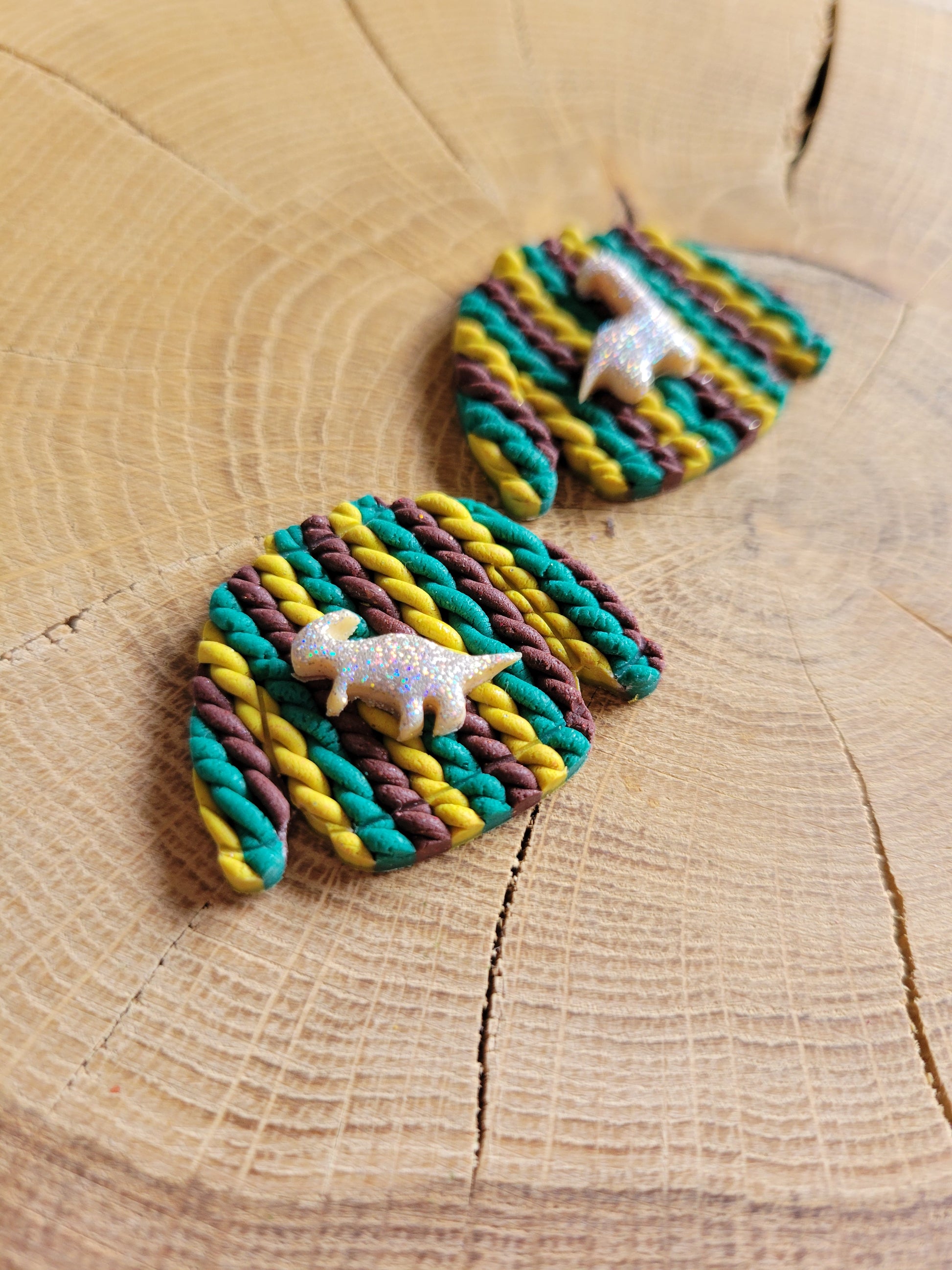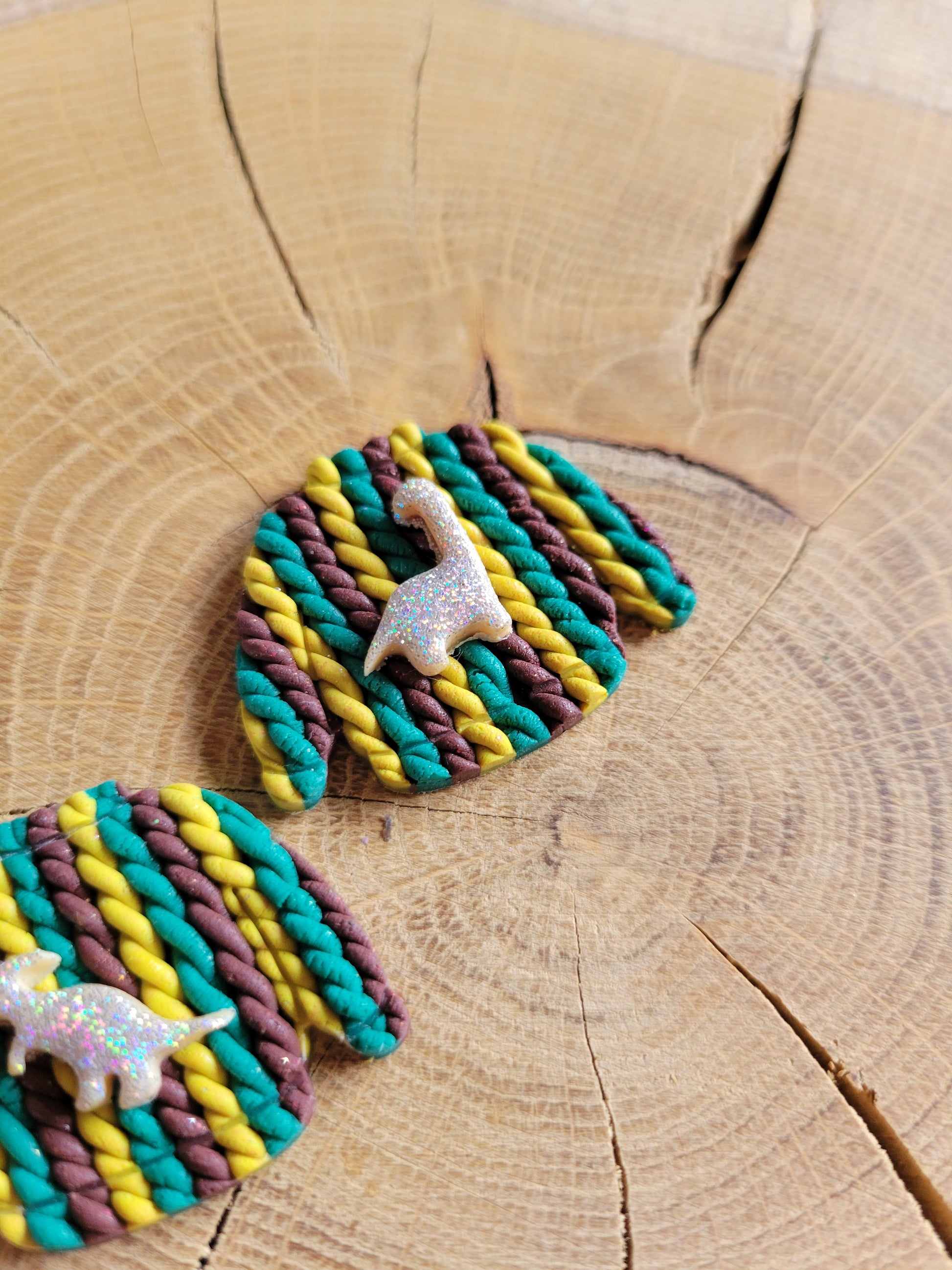 These cheeky dinosaur earrings bring festive fun to your holiday wardrobe! Handcrafted from polymer clay, each pair features an adorable dino design inspired by those gloriously tacky Christmas jumpers we all secretly love. Lightweight and comfortable for all-day wear, they're the perfect quirky accessory for anyone who embraces the ugly Christmas jumper spirit year-round. Spread some prehistoric cheer with a wink and a smile!