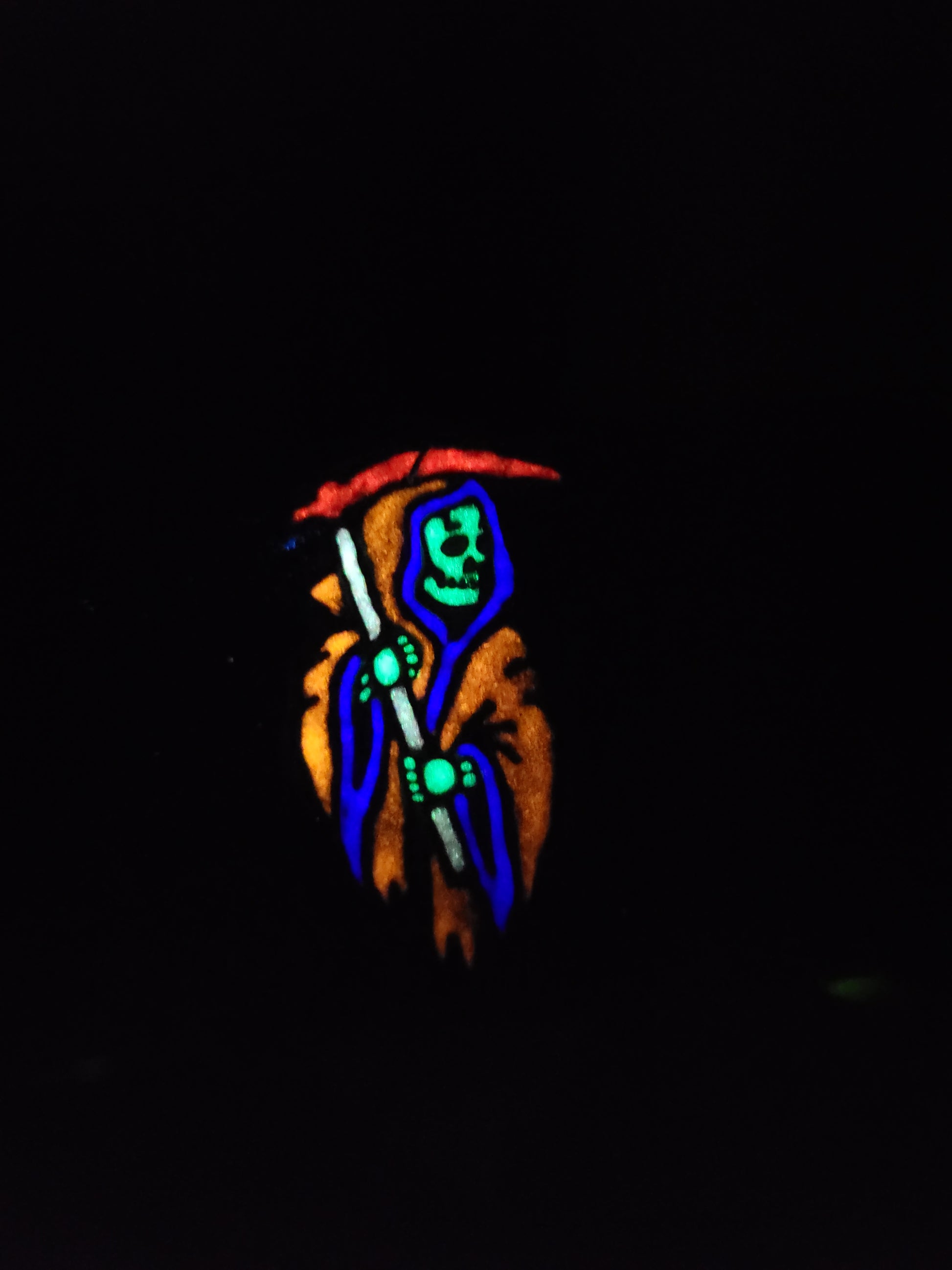 Embrace your darker side with a splash of luminous fun. These handpainted Grim Reaper earrings glow a vibrant orange in the dark, bringing an edgy yet whimsical vibe to your collection. Each pair is uniquely crafted with bold, funky details that catch the light by day and shine brilliantly after dark. Perfect for those who love a bit of mischievous charm with their jewellery.