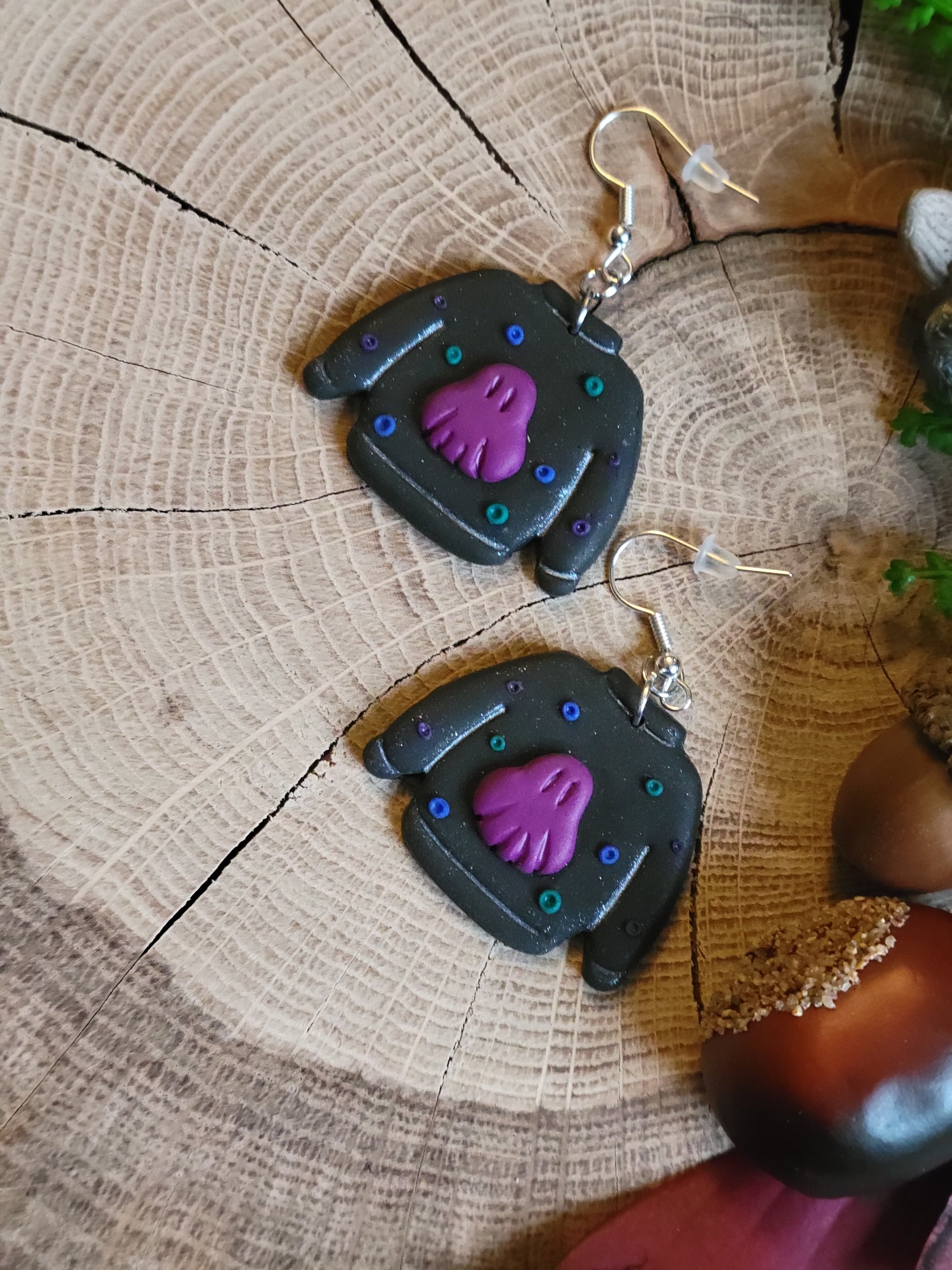 Embrace your inner goth with these delightfully quirky Halloween jumper earrings. Handcrafted from polymer clay, each pair features spooky charm that celebrates the creepy season year-round. Perfect for those who'd rather skip the tinsel and opt for something wickedly wonderful instead. Lightweight, durable, and unapologetically unconventional—because sometimes the best fashion statements are the ones that make people smile and shudder at the same time.
