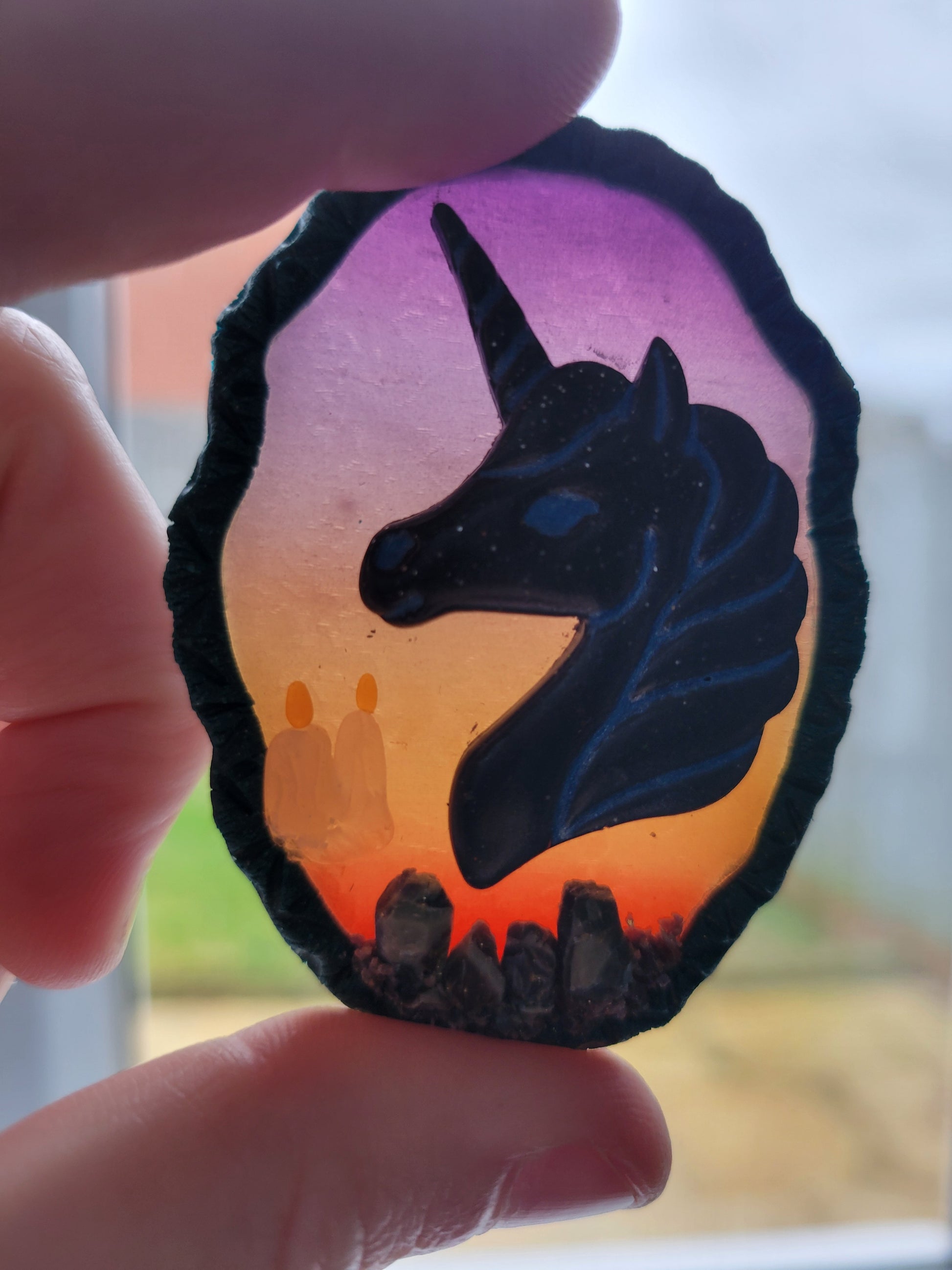 Summon your inner magic with this enchanting necklace. Handcrafted from polymer clay, this whimsical pendant features a majestic unicorn adorned with shimmering crystals that catch the light beautifully. The see-through design reveals intricate details and sparkles from every angle, making it a conversation starter wherever you go. Perfect for fantasy lovers, crystal enthusiasts, and anyone who believes in a little everyday enchantment. Wear it as a talisman of wonder and let your mystical side shine.