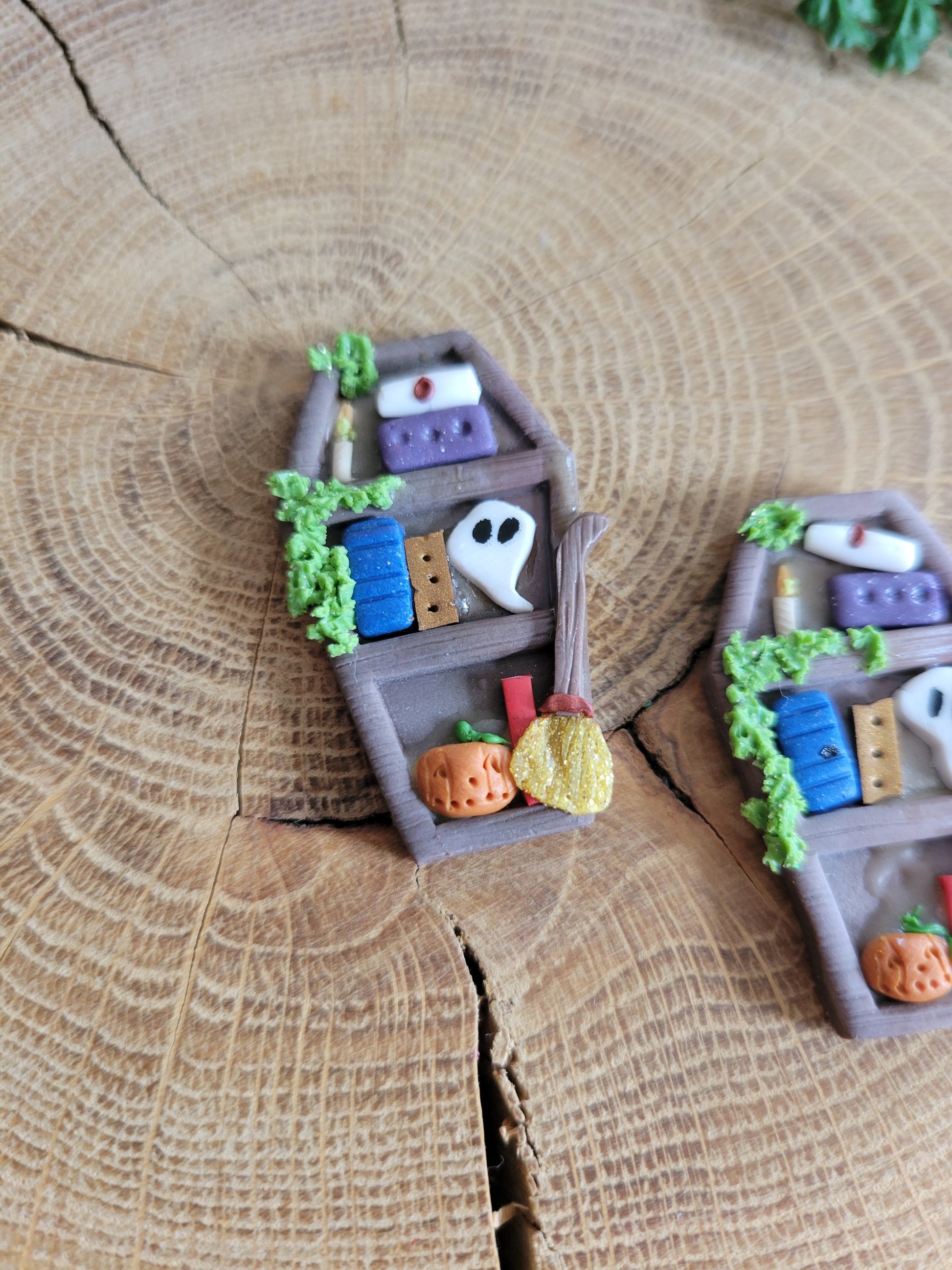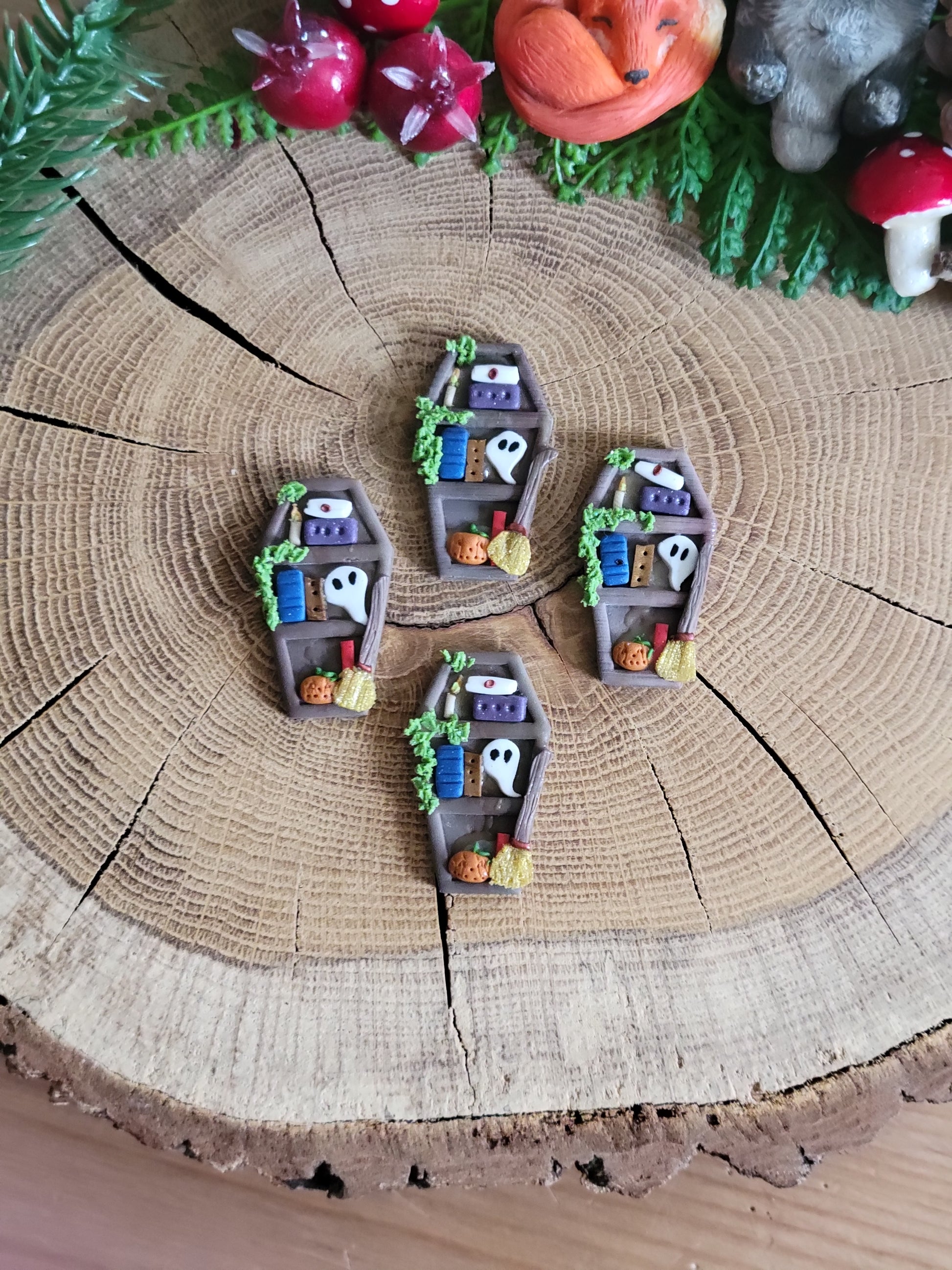 Wear your love of books—and the macabre—on your ears with these cheeky handmade earrings. Crafted from polymer clay, each coffin-shaped design doubles as a tiny bookshelf, complete with miniature literary treasures. Perfect for gothic bookworms and spooky-season enthusiasts year-round, these lightweight pieces add a wickedly fun touch to any outfit. A delightfully dark accessory that proves reading can be downright sinister.