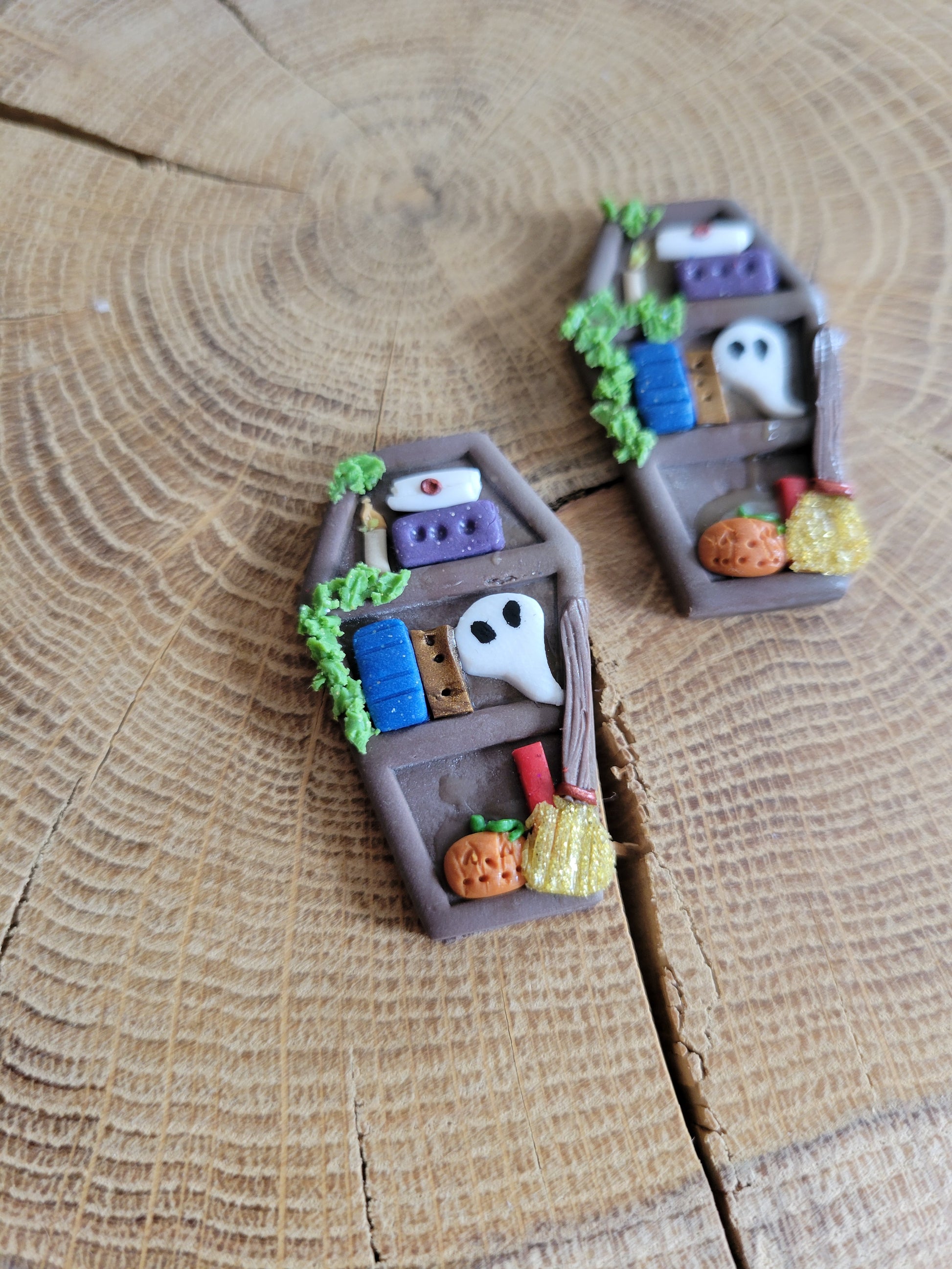 Wooden Coffin Bookshelf Earrings